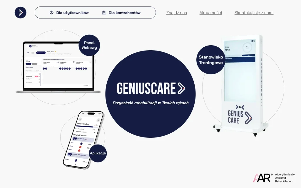 Strona prezentacyjna systemu wspomagającego rehabilitację oraz komunikację między pacjentem a fizjoterapeutą